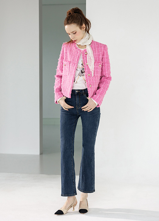굉장히 고급스러운 무드의 트위드 숏 자켓입니다.