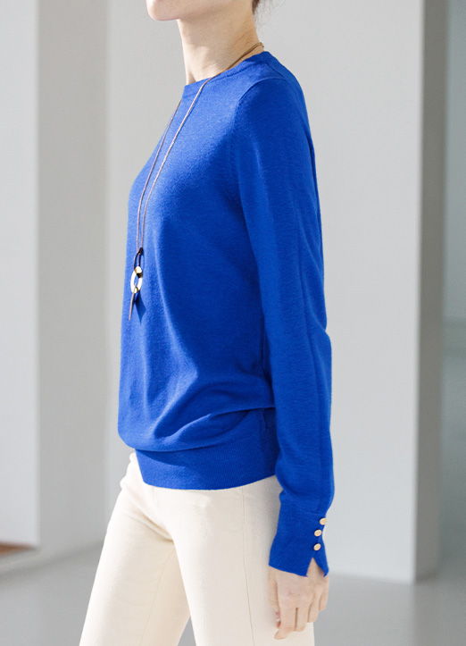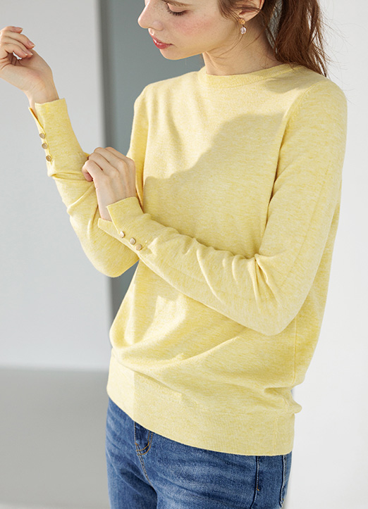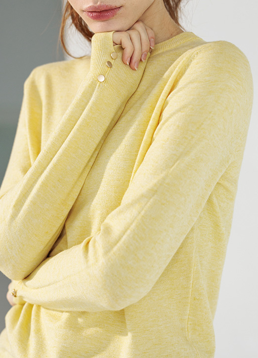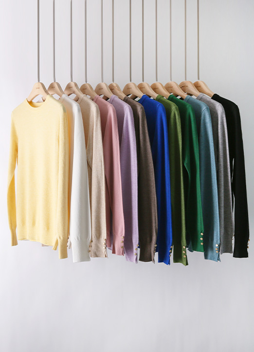 [The Onme] (12 Colors) Gold Button Slit Cuff Round Neck Knit Top