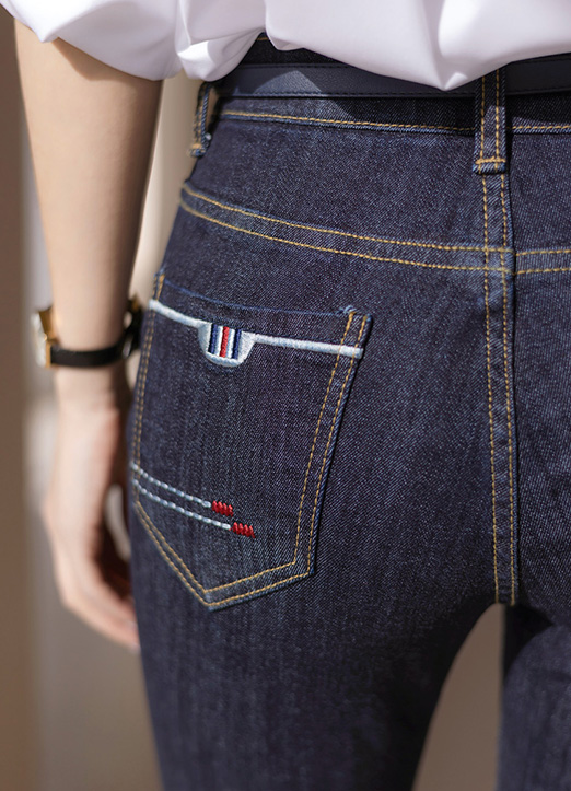 [LouisAngel] Mid Rise Elastic Waist Embroidered Detail Slim Straight Pants
