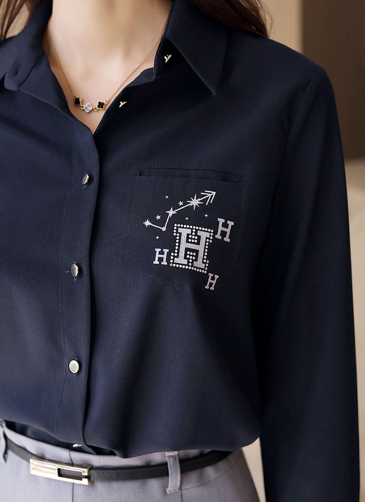 [LouisAngel] Fancy Button Detail Lettering Shirt