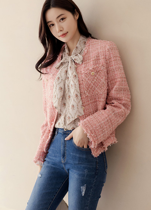 플라워 쉐입의 버튼으로 러블리한 포인트를 더해주었으며