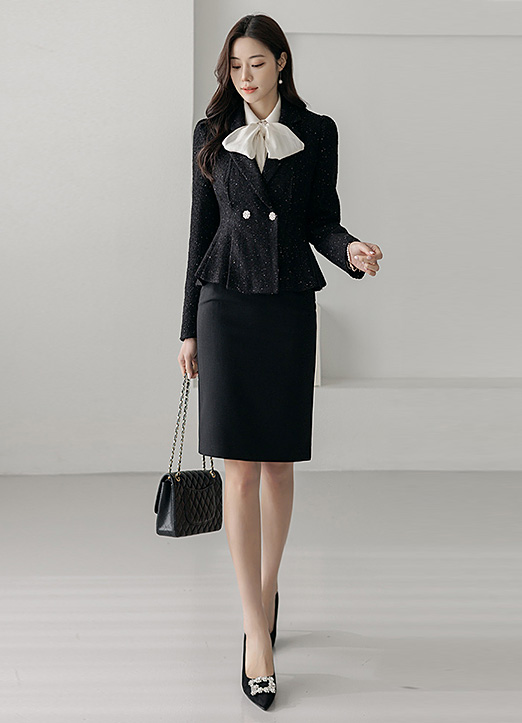 잘록한 허리라인과~ 아래로 퍼지는 페플럼 디자인으로