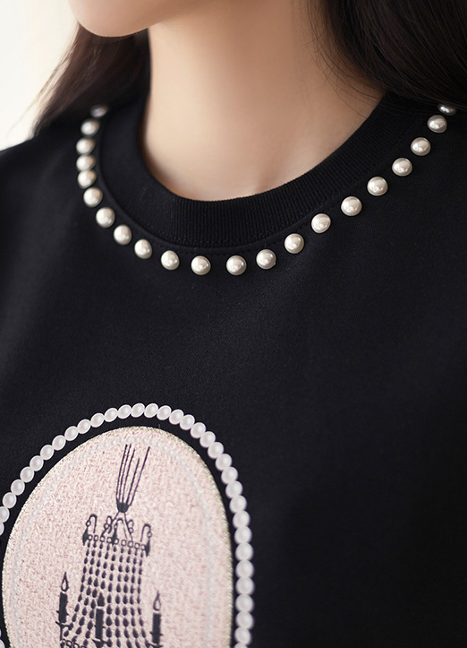 Lettering Pearl Embellished Back Slit Sweatshirt