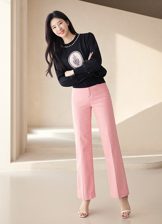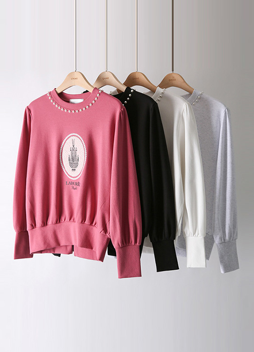 시보리로 핏을 잡아주어 페미닌한 맨투맨이에요 :)