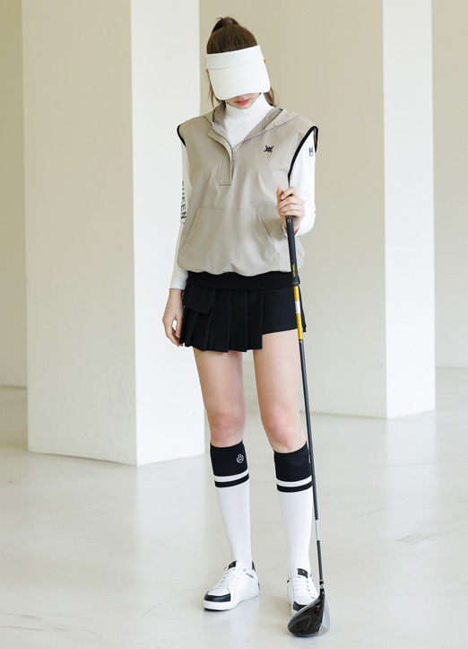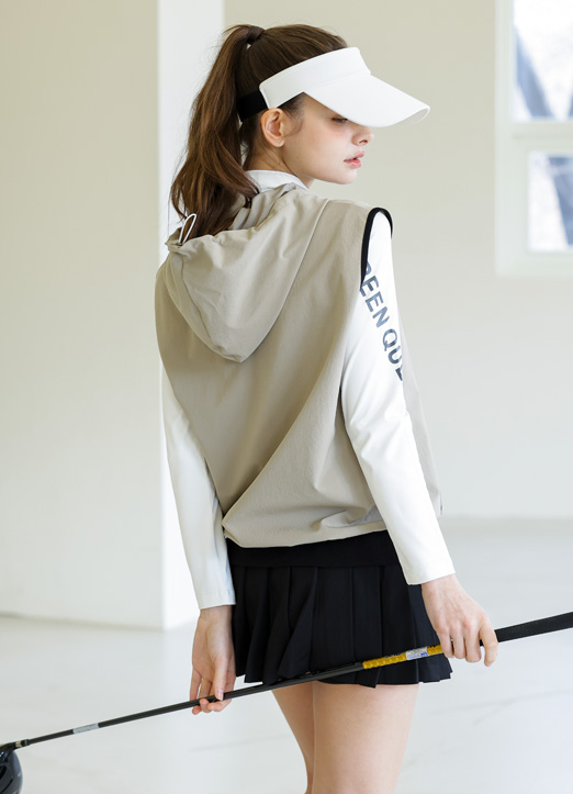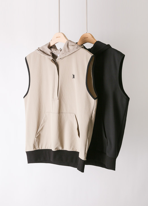 [QoG] Contrast Trim Hooded Half Zip-Up Vest