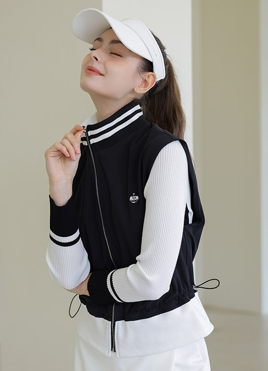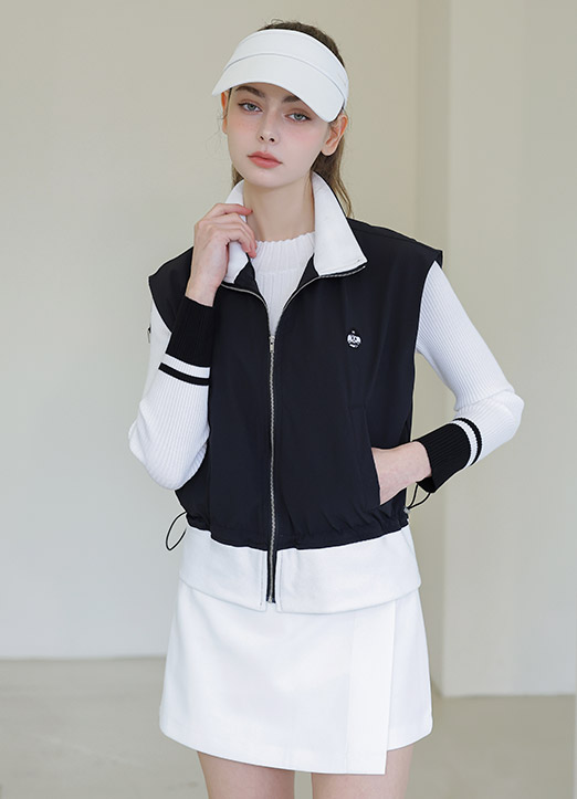 [QoG] Contrast Hem Drawstring Zip-Up Vest
