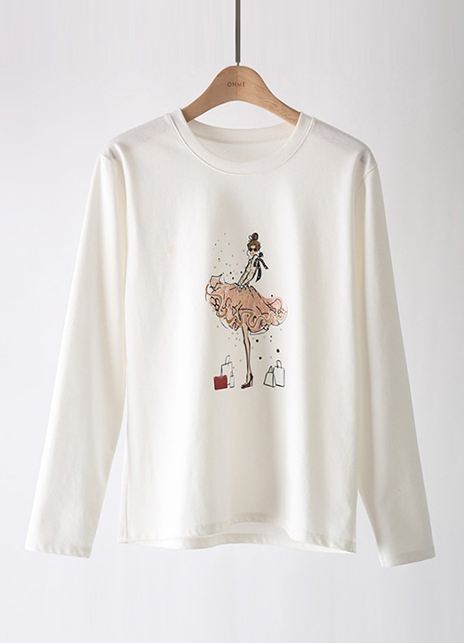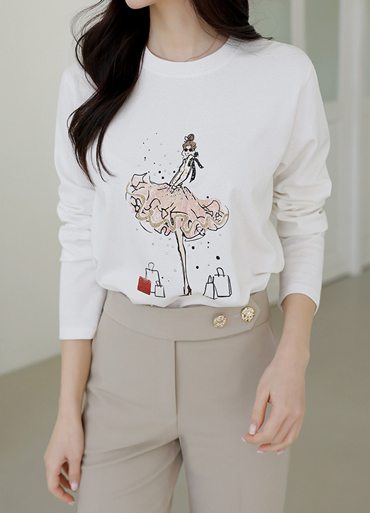 [A stylish tee with a ballerina-inspired print, pearl accents, and a flattering fit, perfect for casual or semi-dressy looks.]