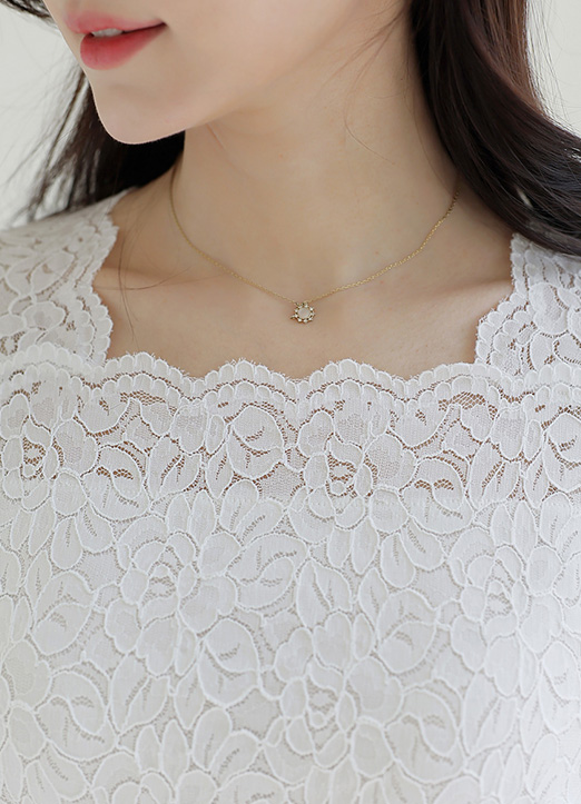 [LouisAngel] Square Neck Half Sleeve Floral Lace Top