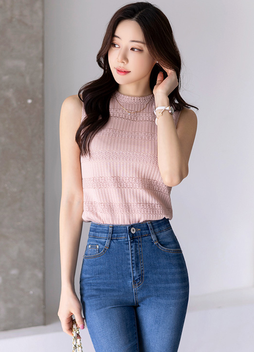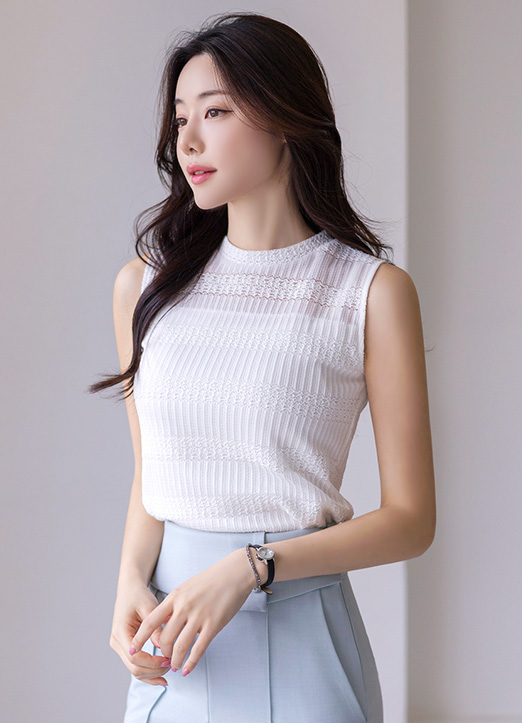 [LouisAngel] Textured Sleeveless Lace Top