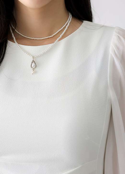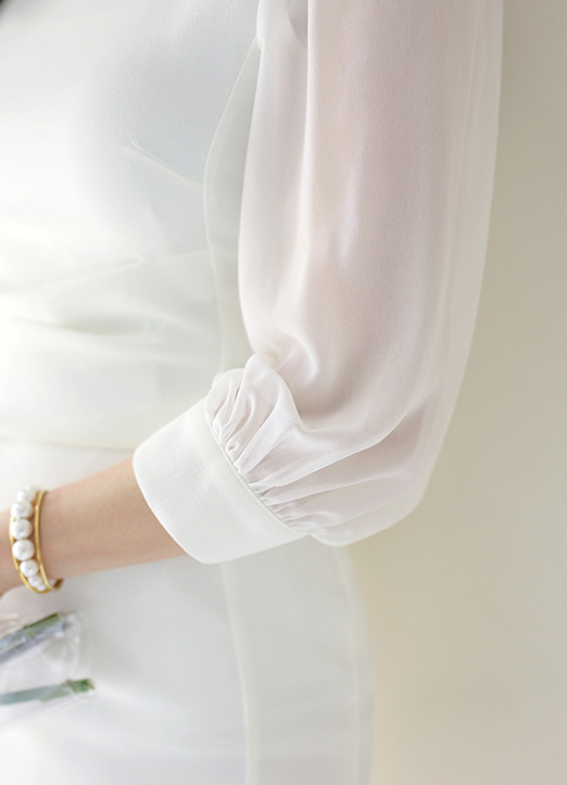7부 기장의 쉬폰 소매가 시원하게 트여보이며