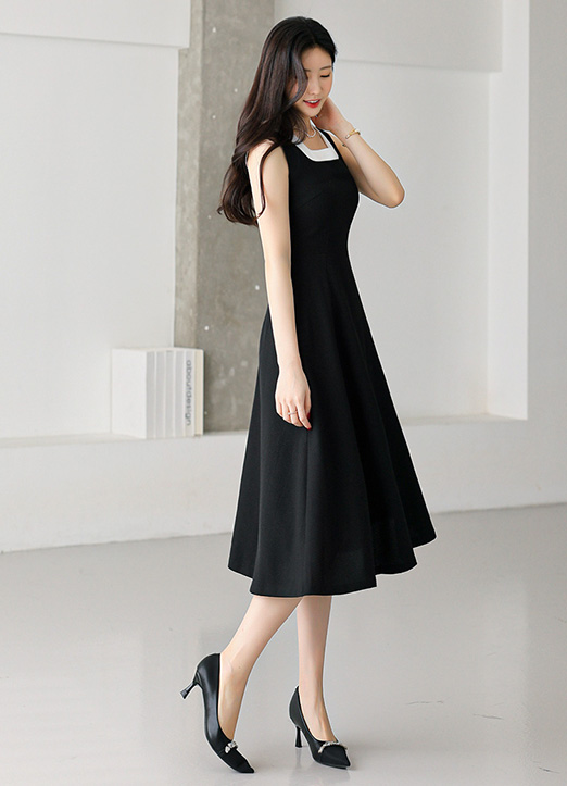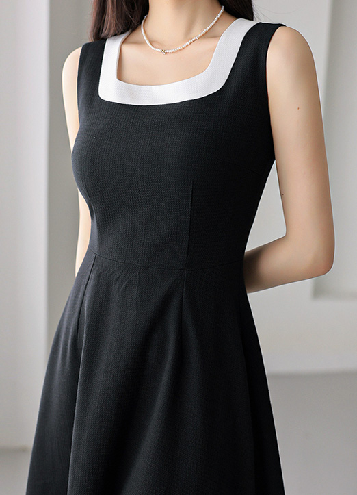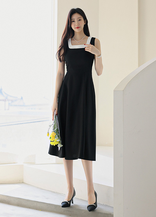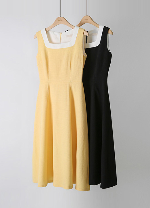 스퀘어넥 디자인으로 단정하면서도 세련된 분위기를 연출하며