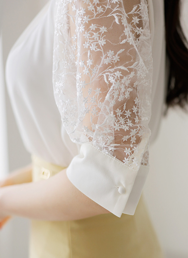 시스루 소매로 시원한 무드를 더해주어