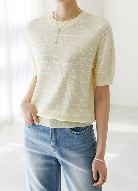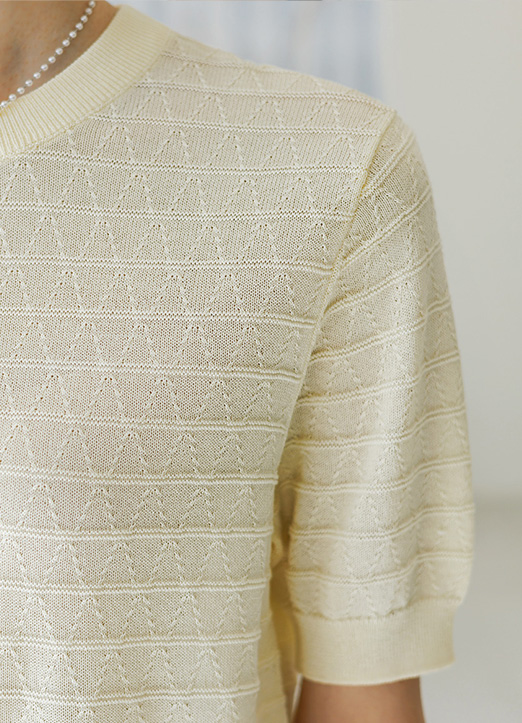베이직한 디자인에 패턴으로 포인트를 준 비스코스 니트