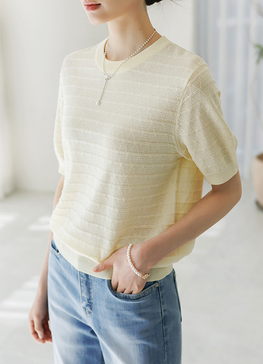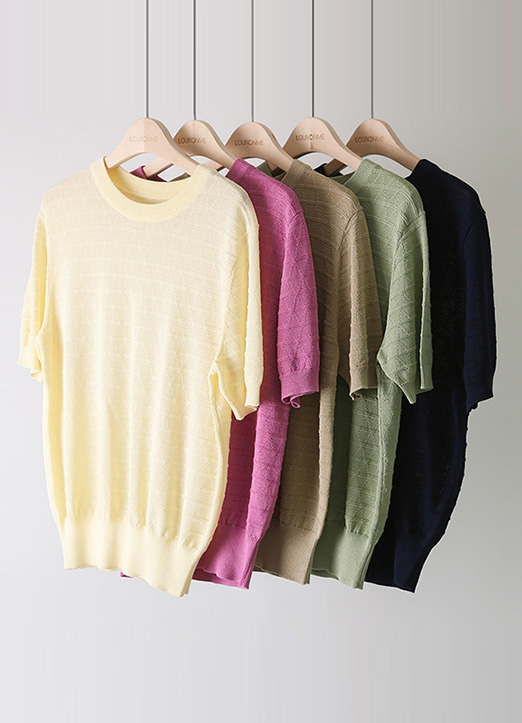 [The Onme] (5 Colors) Ribbed Edge Round Neck Textured Knit Top