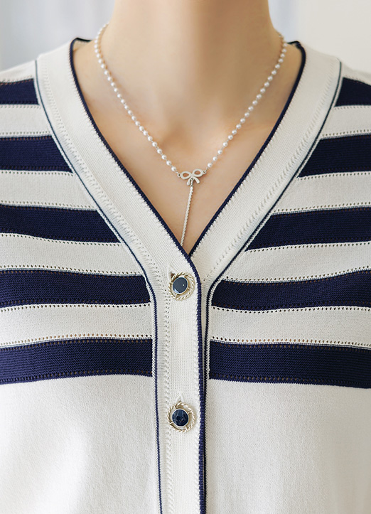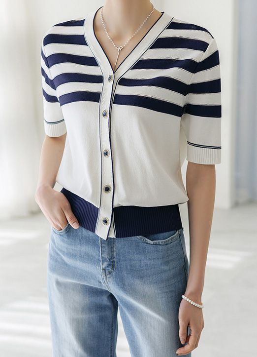 배색 라인으로 시원한 무드를 주며 탄탄하면서 부드러운 고퀄리티 가디건
