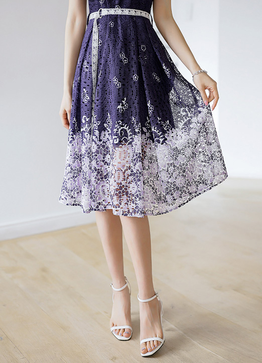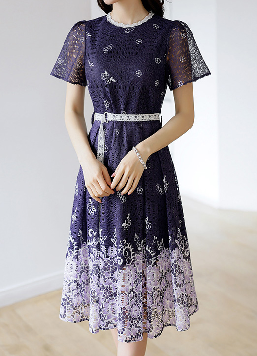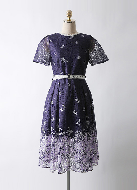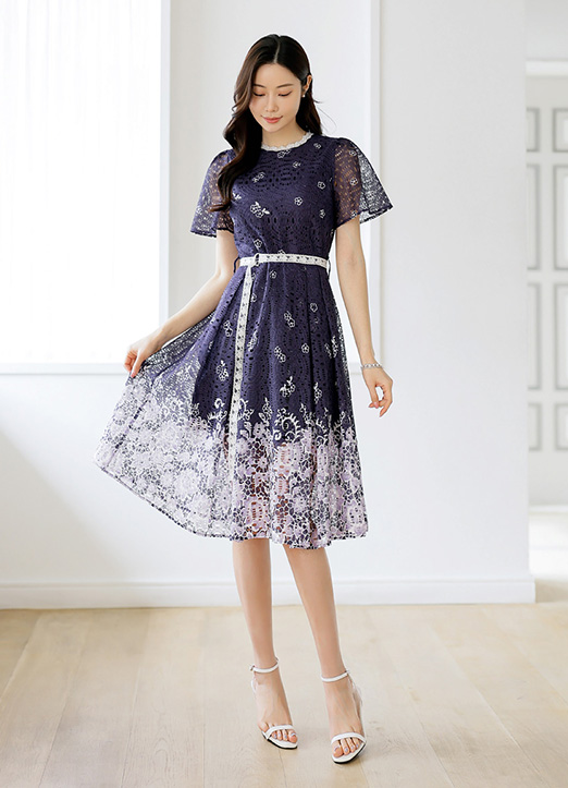 [LouisAngel] Ethereal Two-Toned Floral Lace Dress w/ Lace Belt