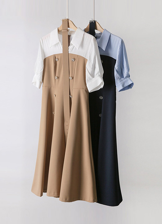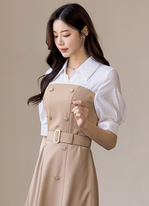 세련된 배색 카라와 금장 버튼이 돋보이는