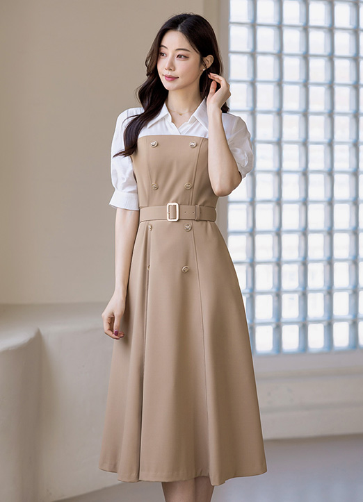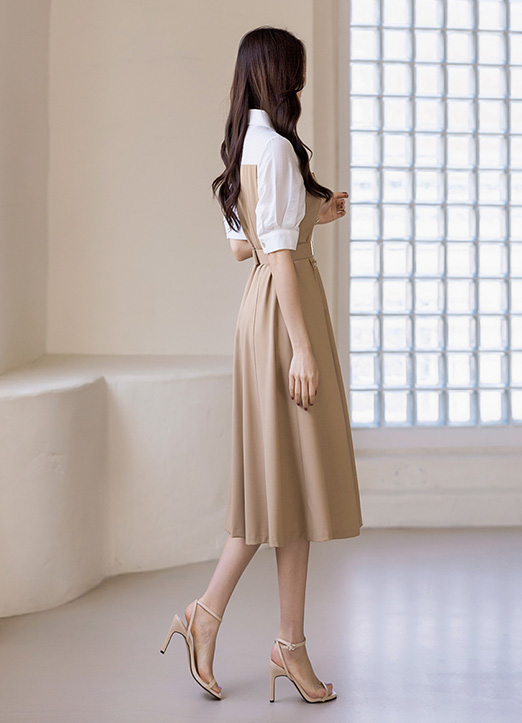 블라우스와 뷔스티에 원피스를 레이어드한 듯~