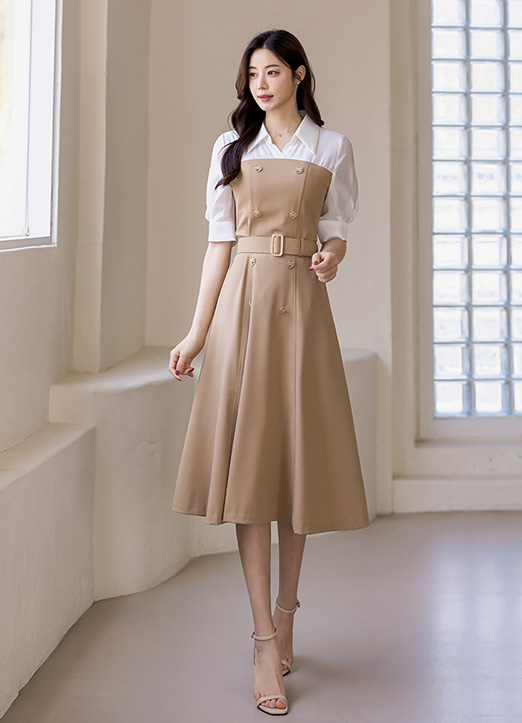 트렌치 스타일의 A라인 롱 플레어 원피스에요 :)