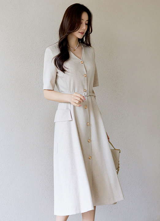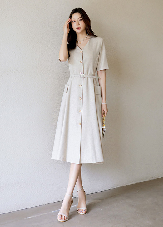 벨트SET 구성의 린넨 혼방 원피스에요 :)