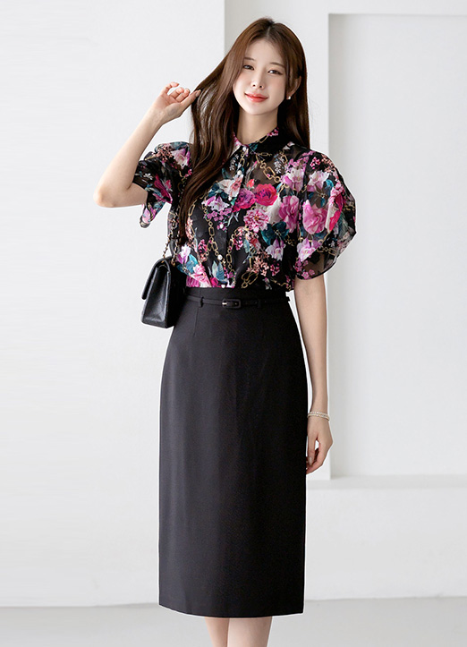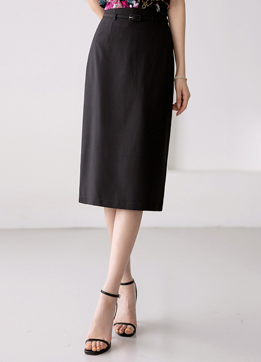High Waist Back Slit Midi Pencil Skirt w/ Belt