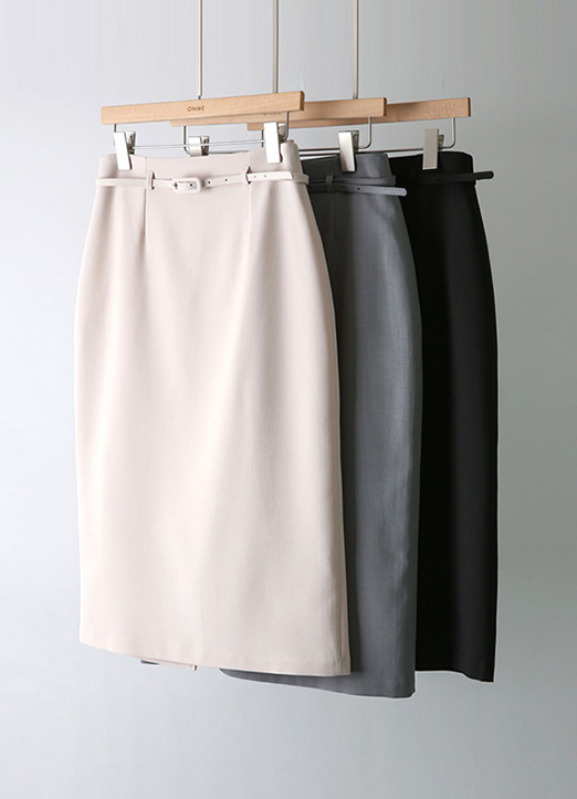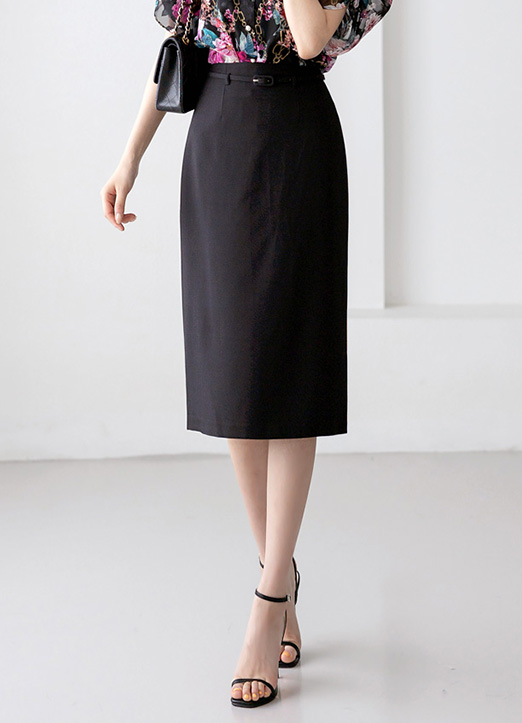High Waist Back Slit Midi Pencil Skirt w/ Belt