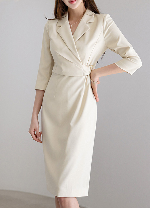 Wrap Design 3/4 Sleeve Tailored Dress