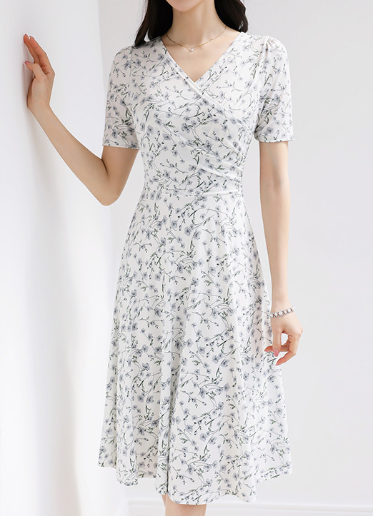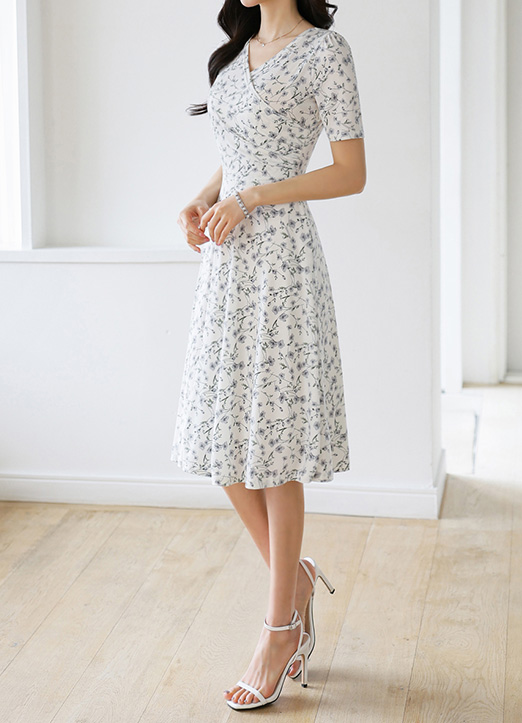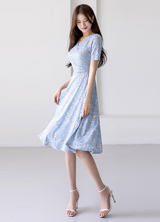 [LouisAngel] Petite Blossom Wrap Flare Dress