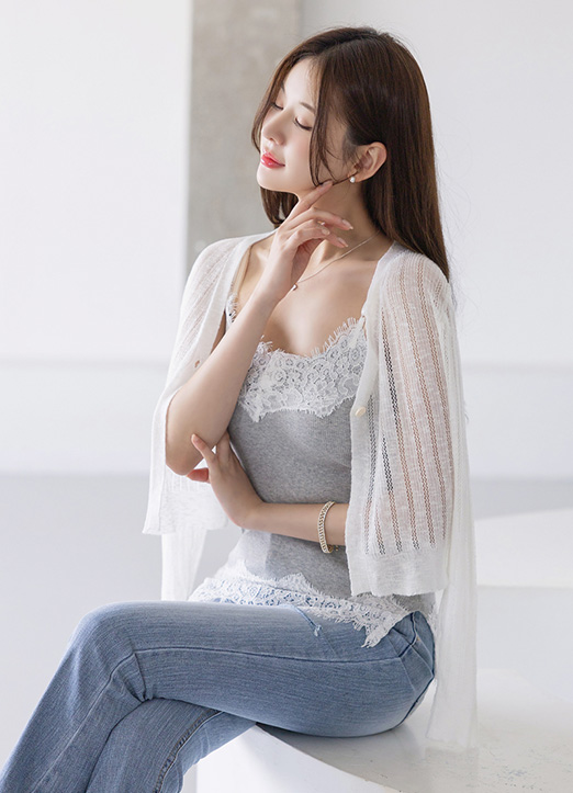 볼레로 타입의 가디건으로 가볍게 걸쳐주기만 해도