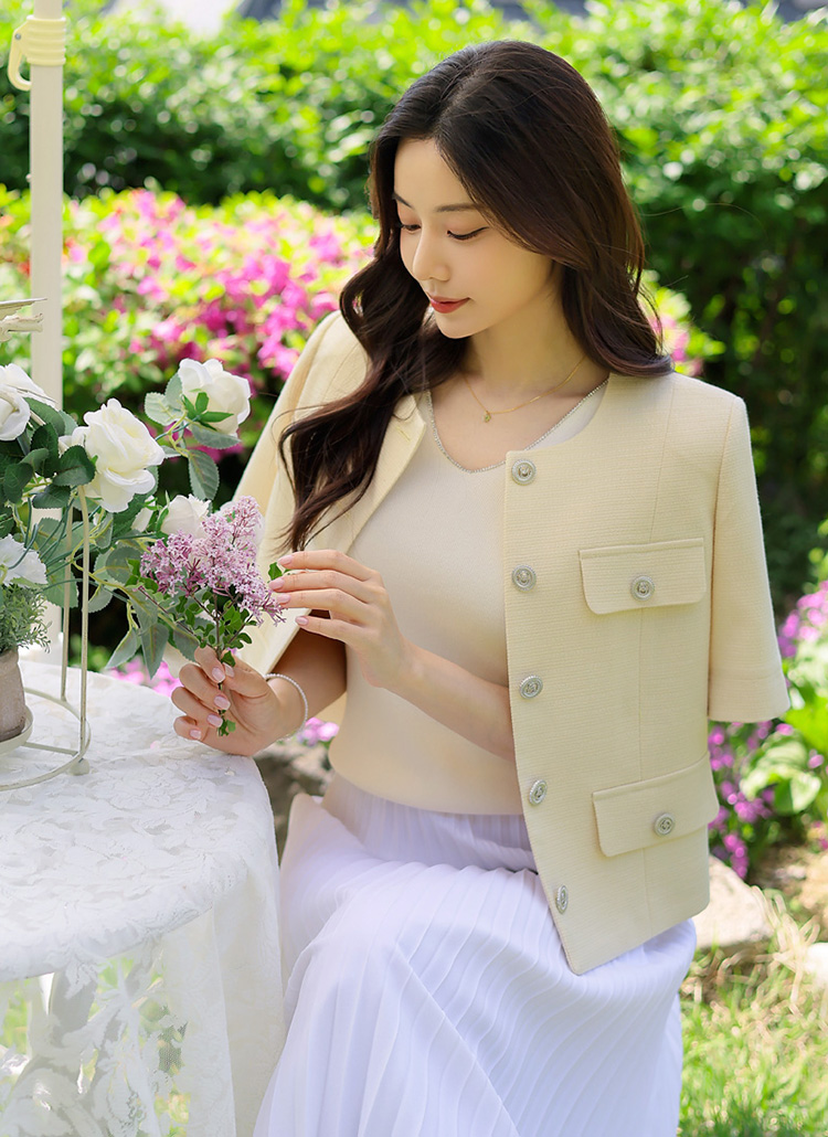 [LouisAngel] Cool Collarless Summer Tweed Jacket