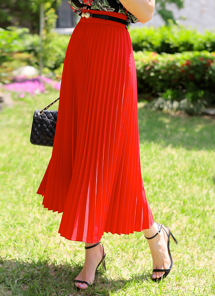 [LouisAngel] Metallic Striped Elastic Back Waist Pleats Long Skirt