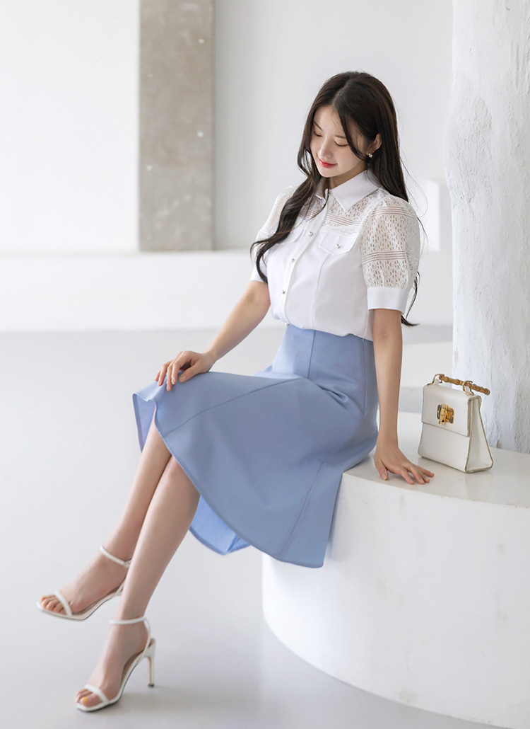 플리티 소프트 절개 플레어 미디 A라인 스커트에요 :)