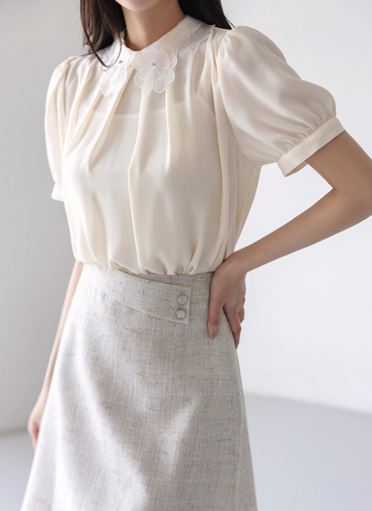 약간의 비침이 있어 은은한 섹시미를 더해주는 블라우스랍니다
