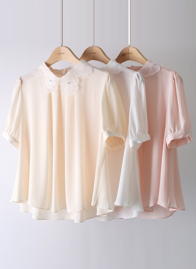플라워 자수 모티브 카라로 소녀감성을 물씬 풍기며