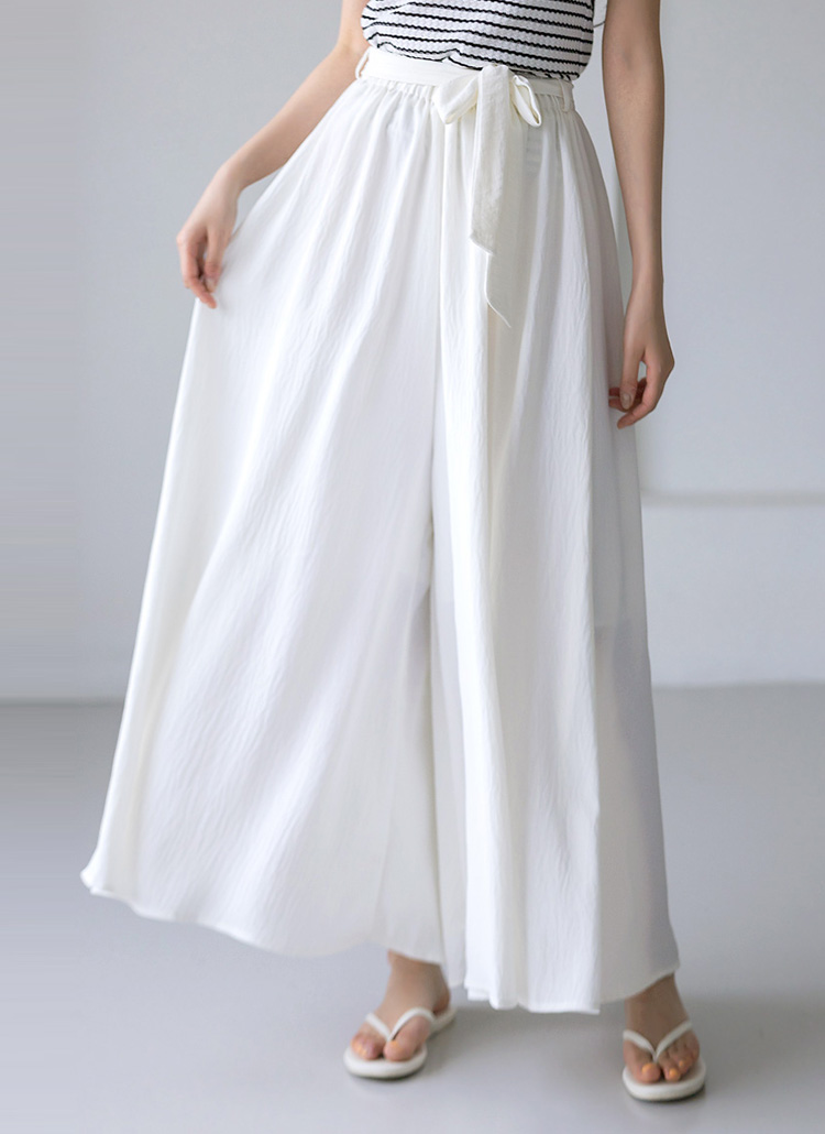 얇고 가벼운 착용감을 선사해주는 밴딩 와이드 팬츠에요