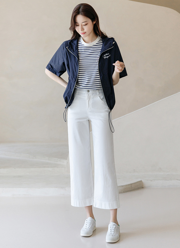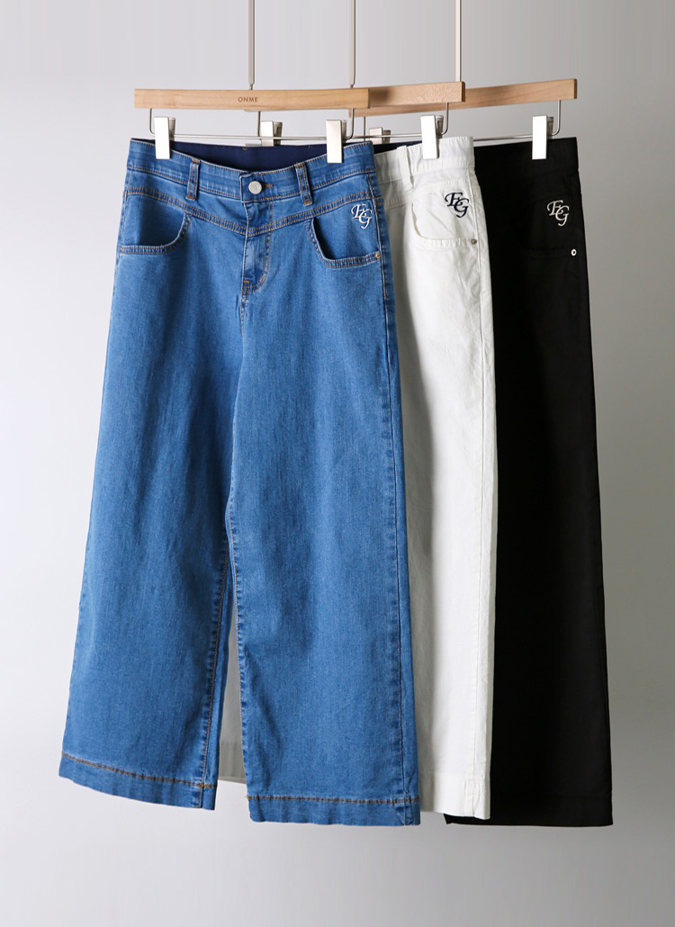 자수 포인트의 썸머 와이드 8부 팬츠에요 :)