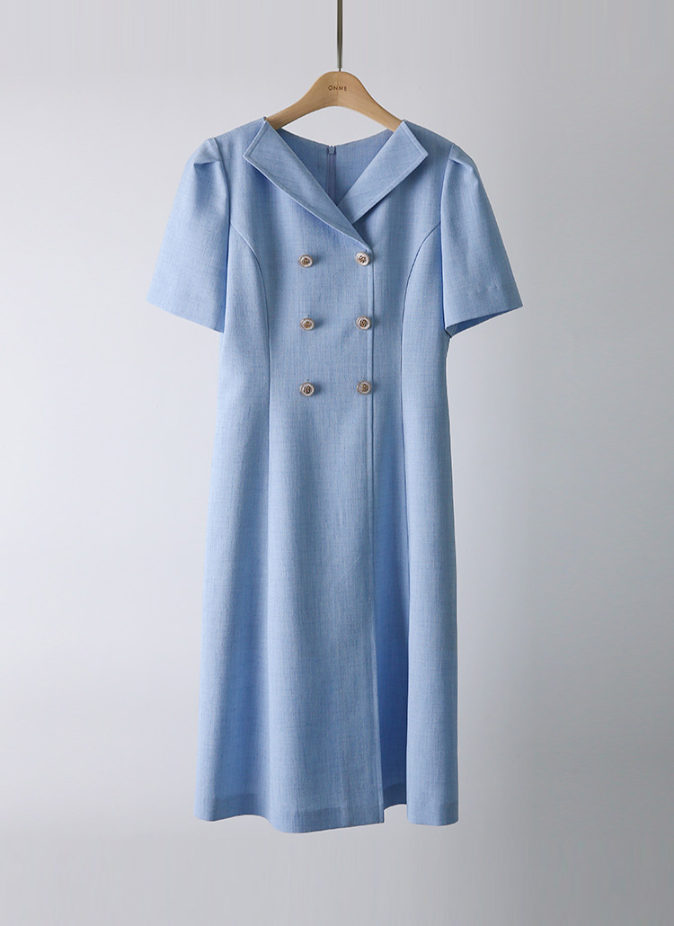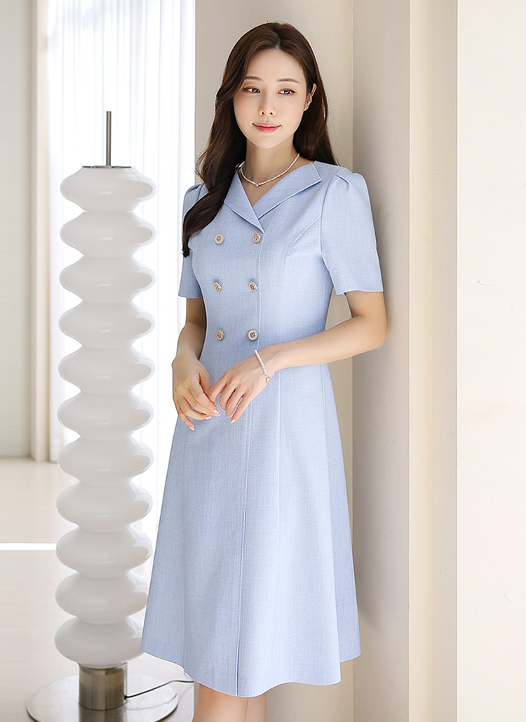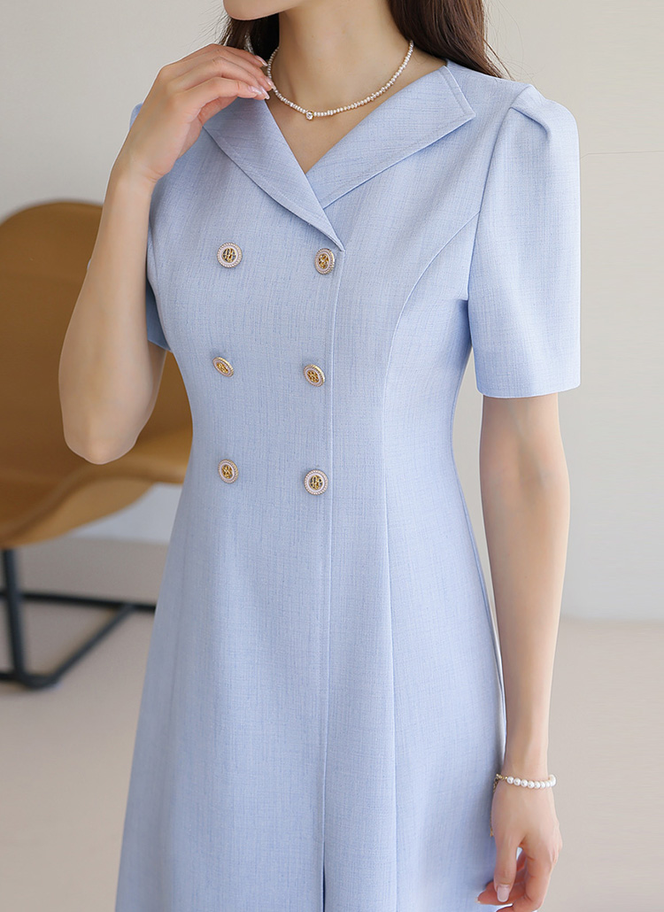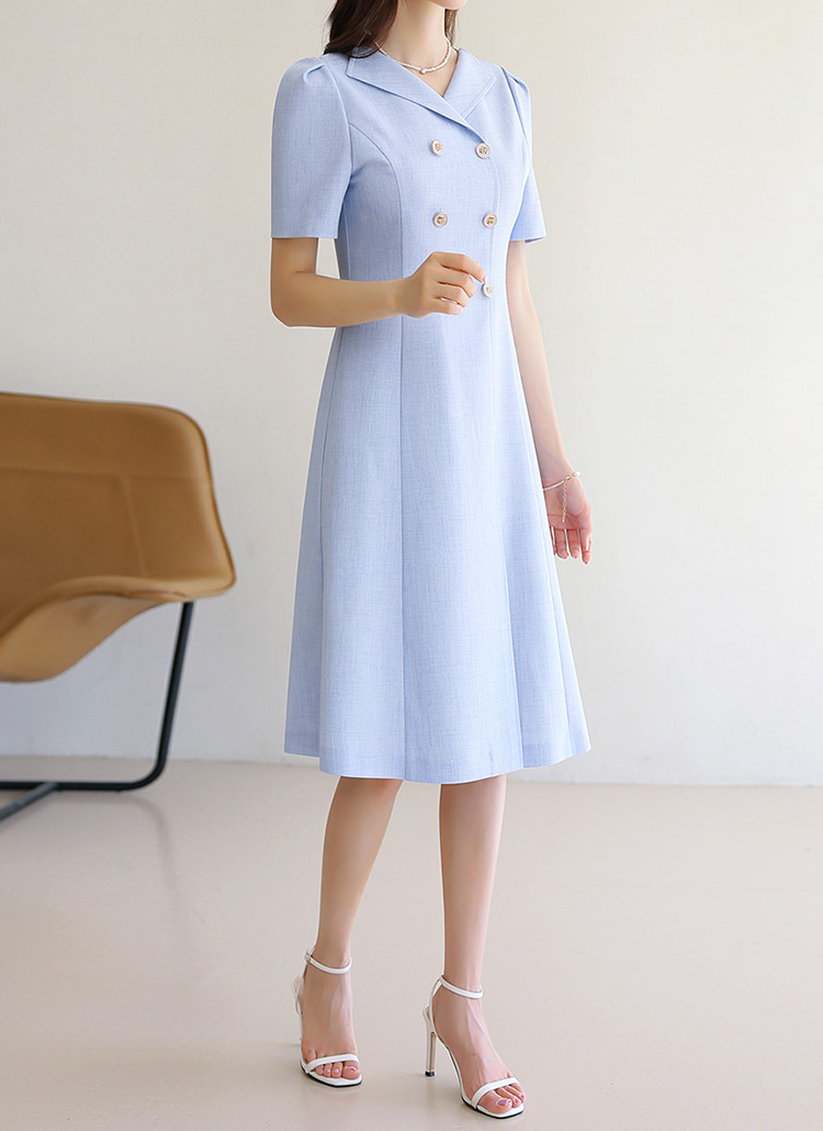 [LouisAngel] Double Button Front Slit Tailored Flare Dress