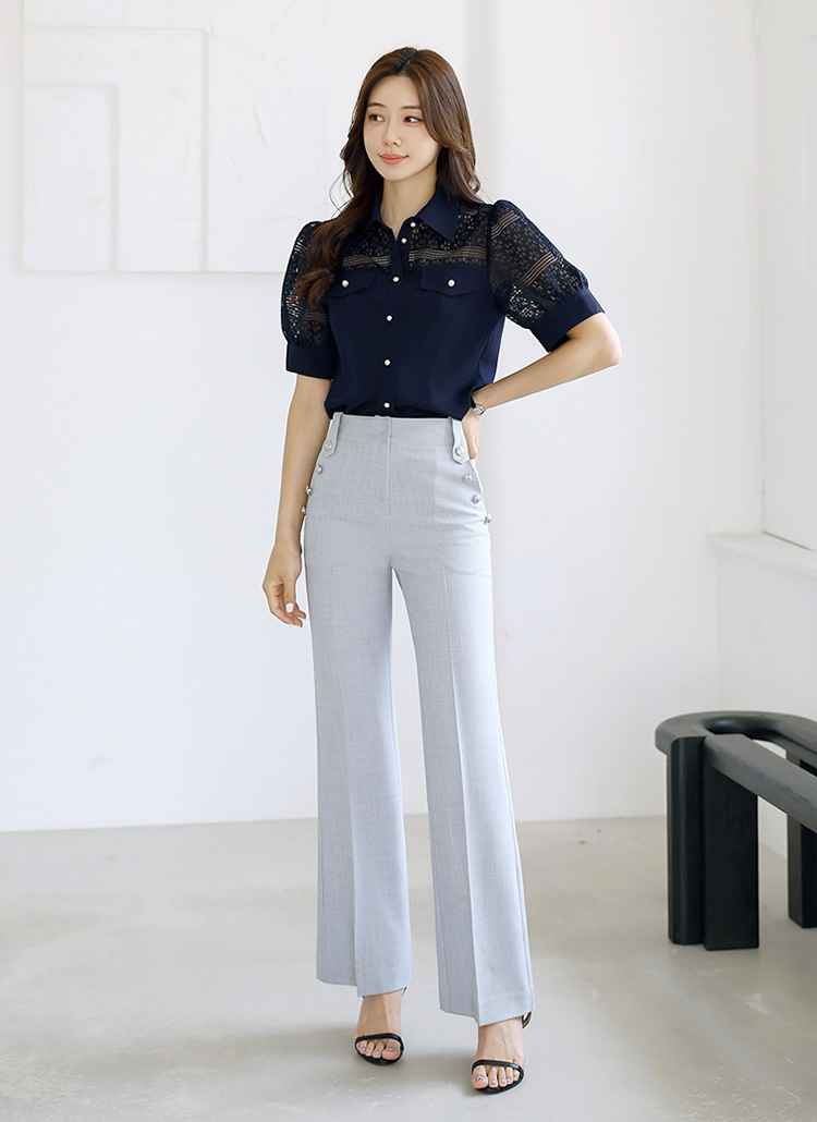 [LouisAngel] Eyelet Lace Yoke Bamboo Blended Shirt