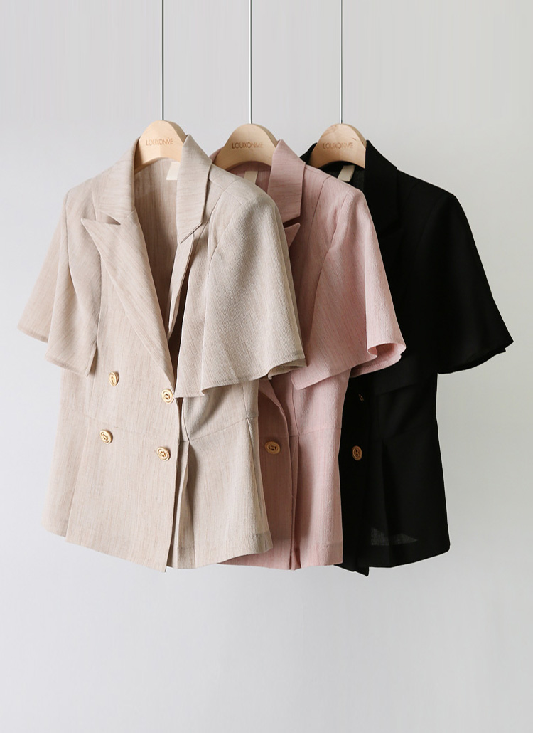 Double Breasted Flare Short Sleeve Peplum Jacket