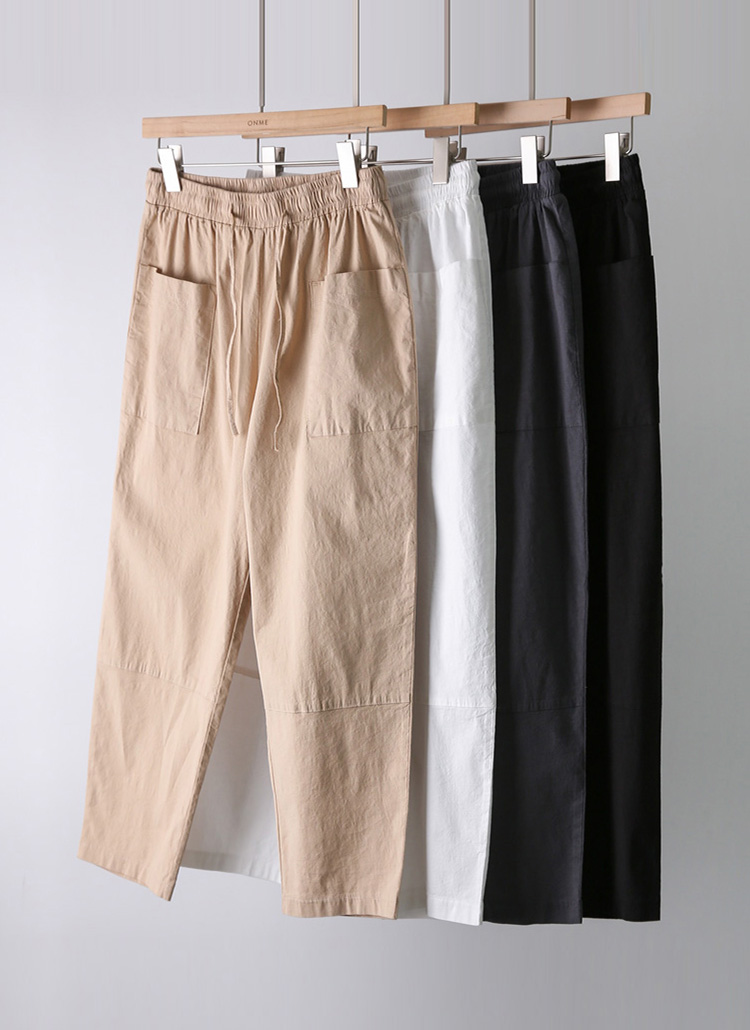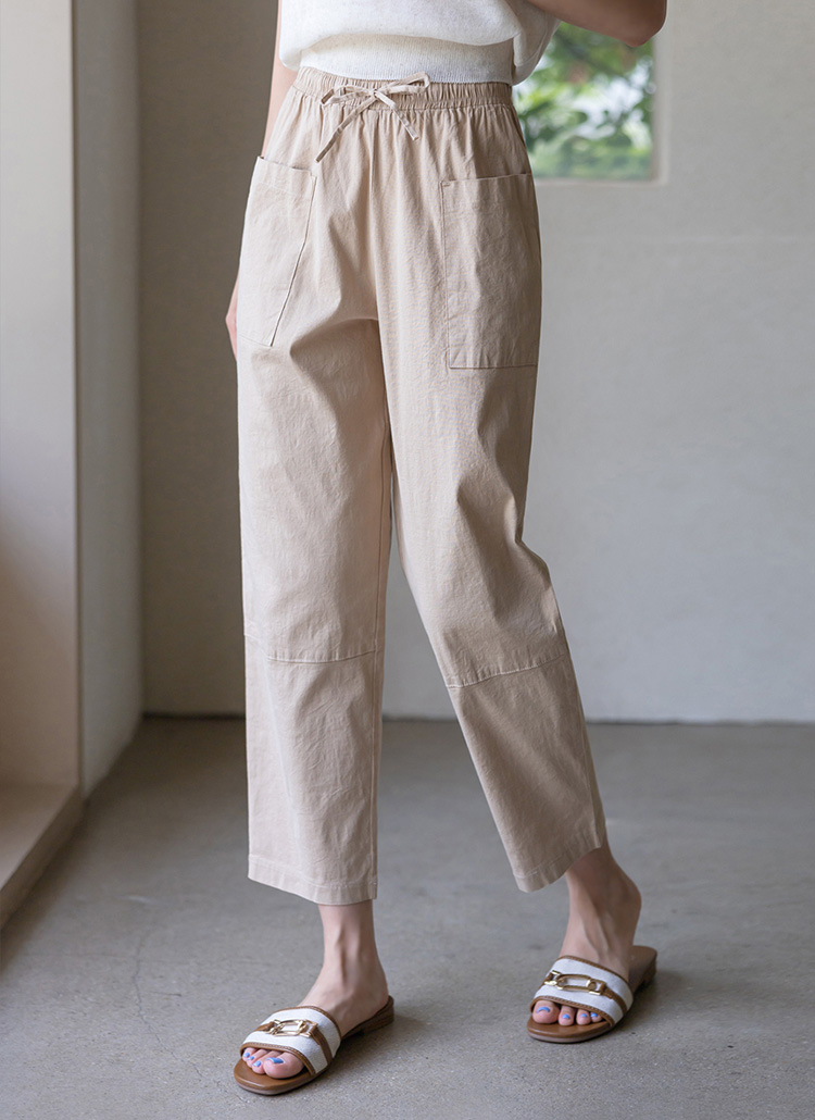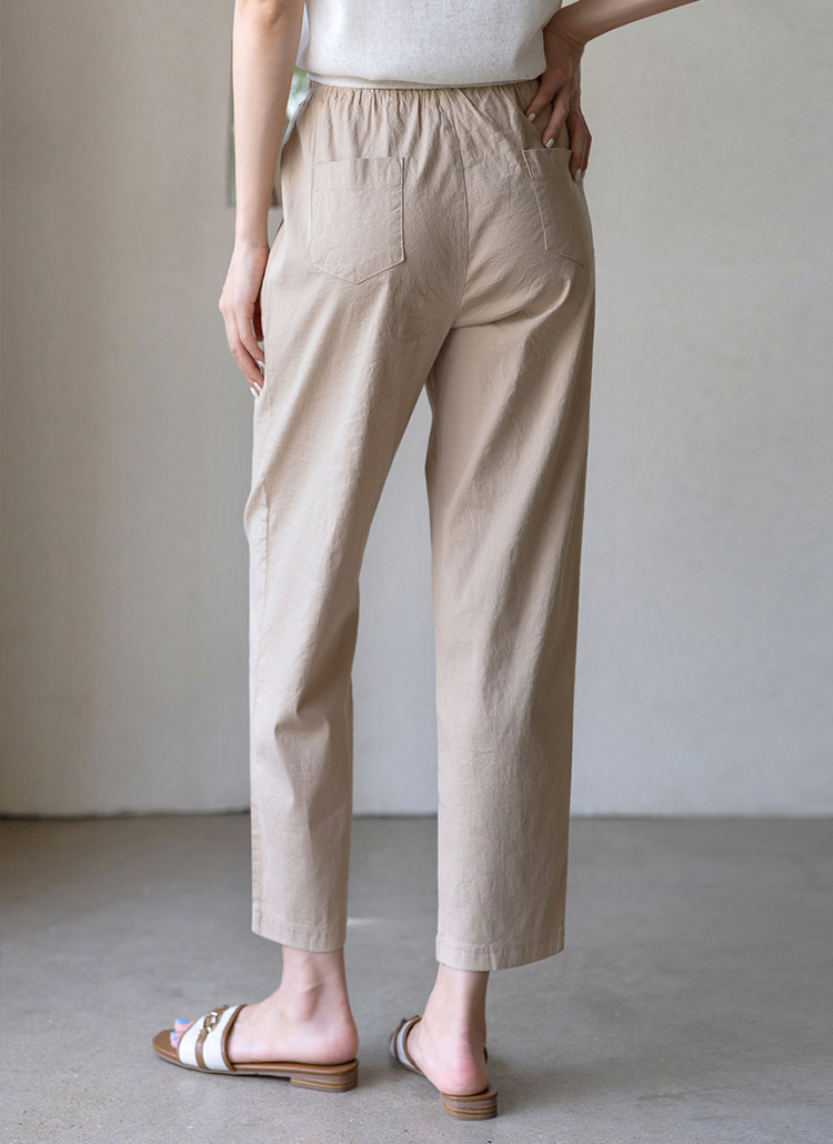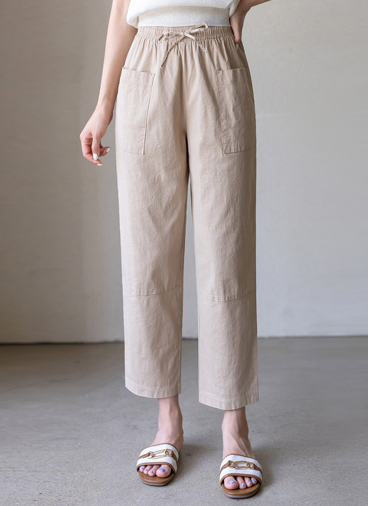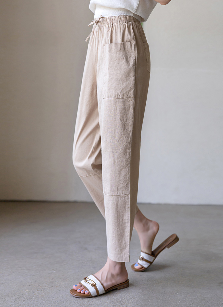 Linen Blended Elastic Waist Tapered Pants