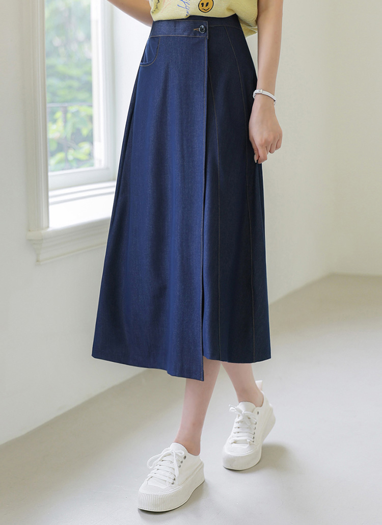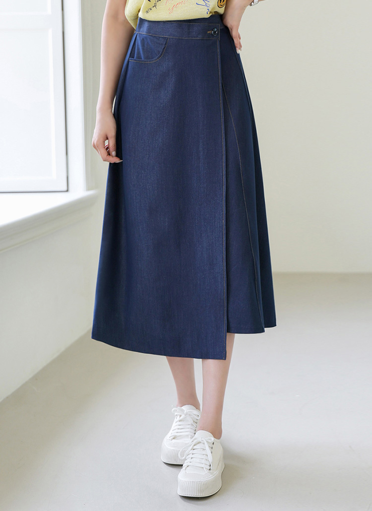Unbalanced Wrap Denim Skirt