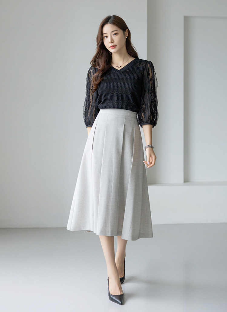 소매 부분은 시스루 디자인으로 여린 어깨라인을 강조해주어
