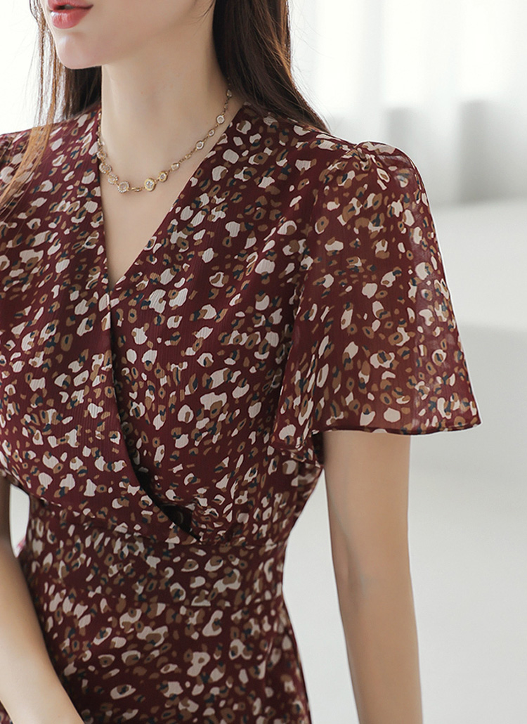 [LouisAngel] Wrap-Design Tie-Waist Chiffon Flare Dress