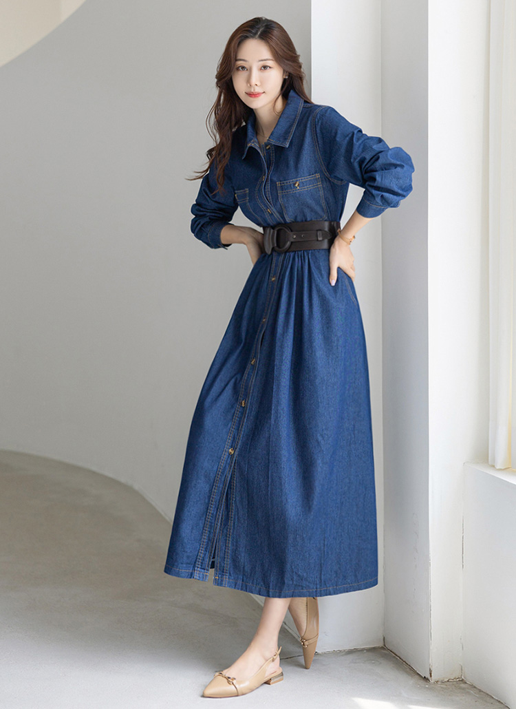 적당한 두께감으로 사계절 내내 편안한 착용감을 선사해주는 데님 원피스입니다