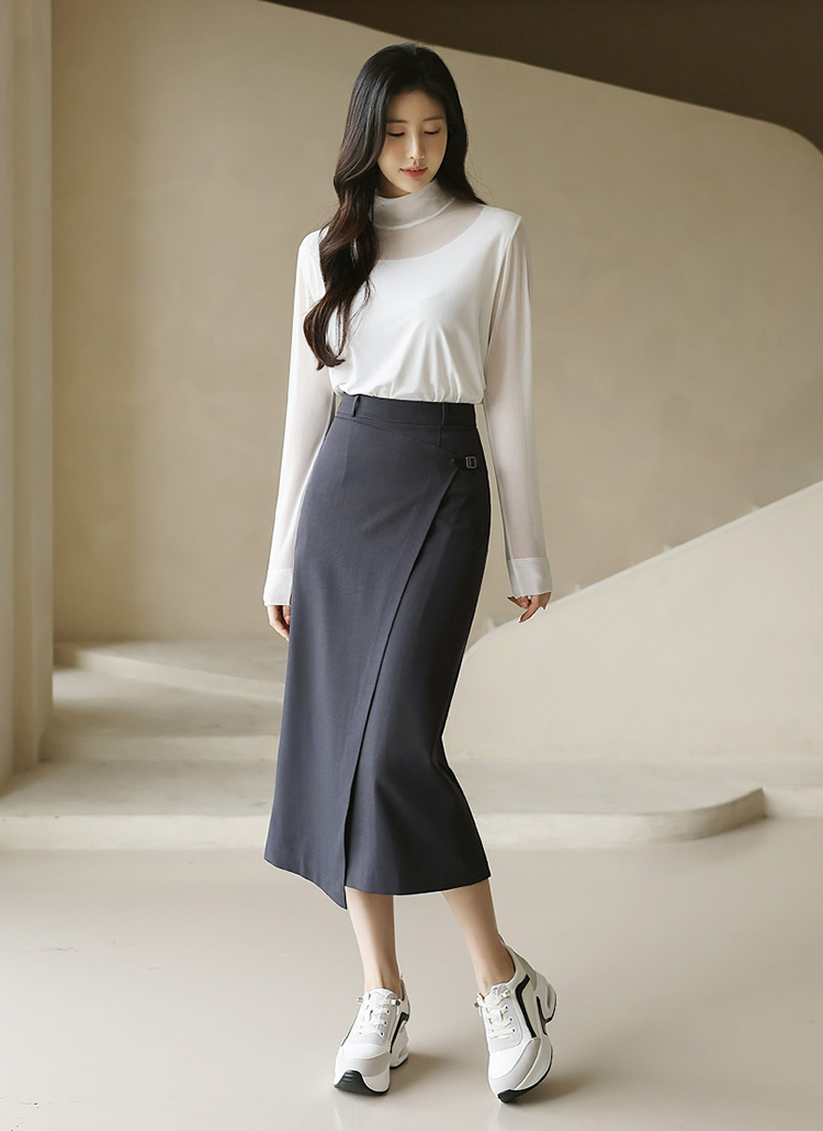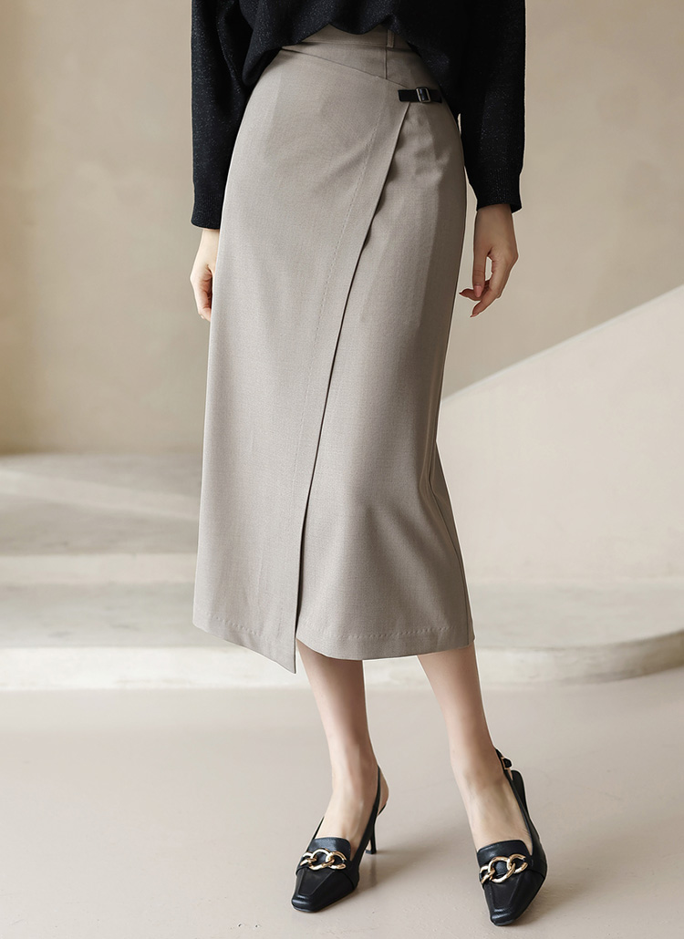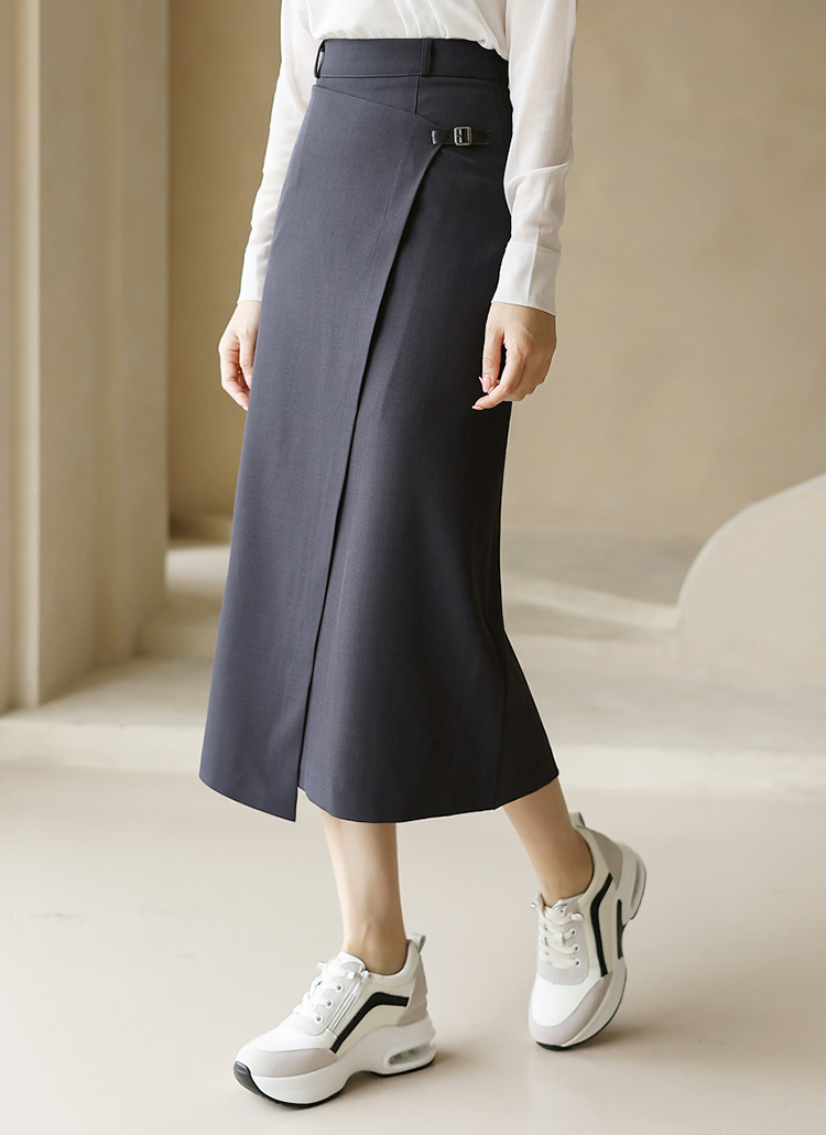 Unbalanced Wrap-Design Back Slit Long Skirt