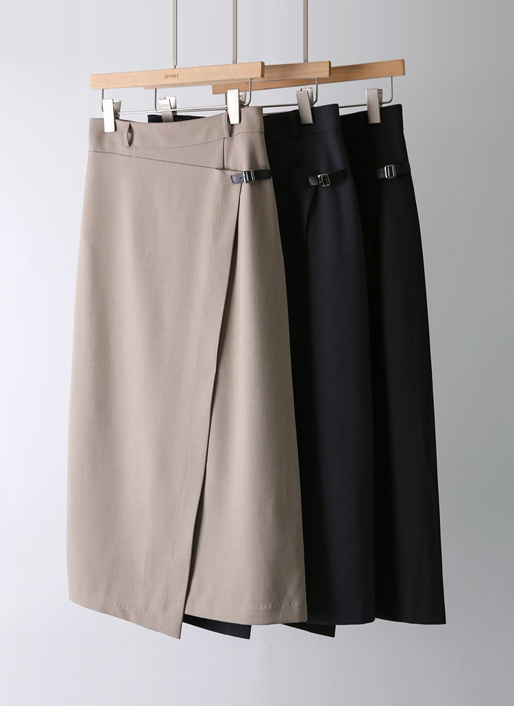 언발란스한 랩 디자인에 레더 버클로 포인트를 준