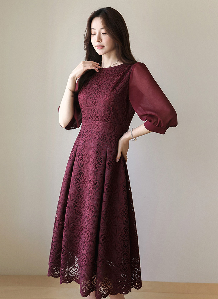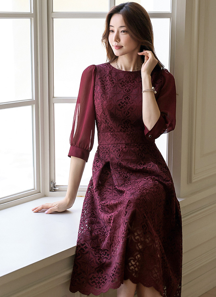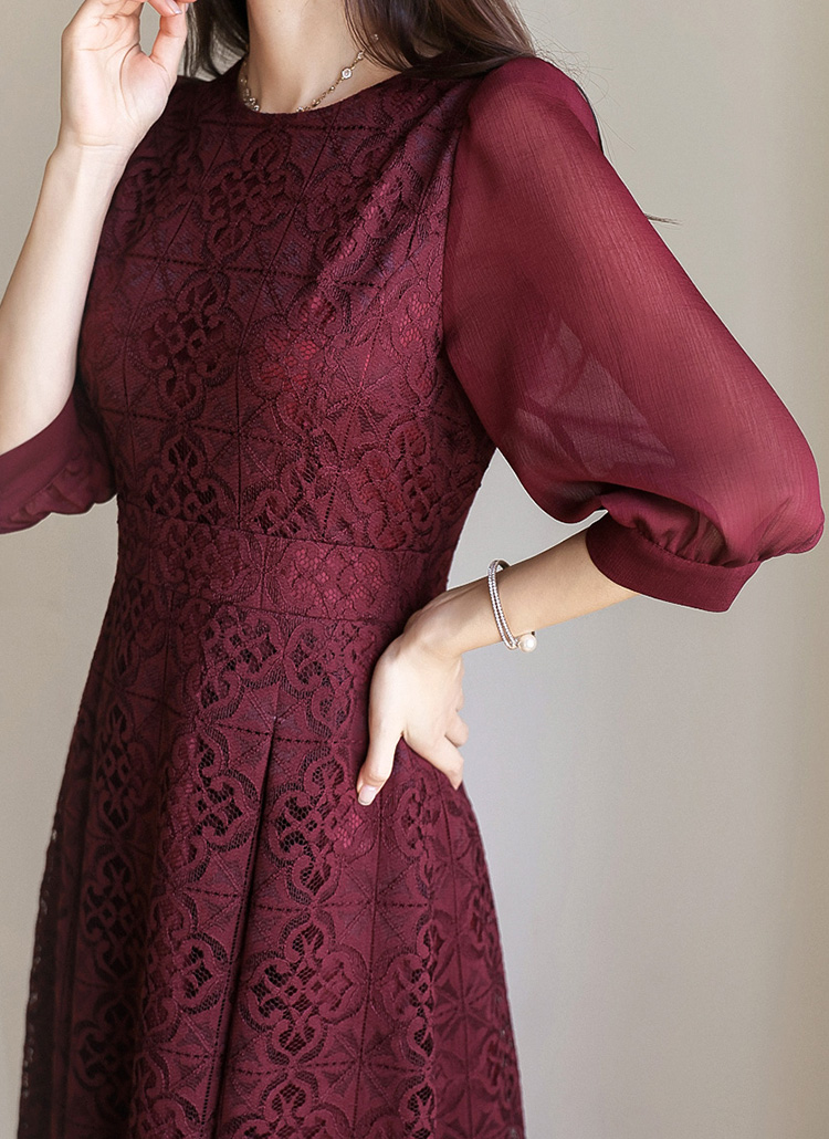 [LouisAngel] Chiffon Sleeve Fit & Flare Ethnic Lace Dress