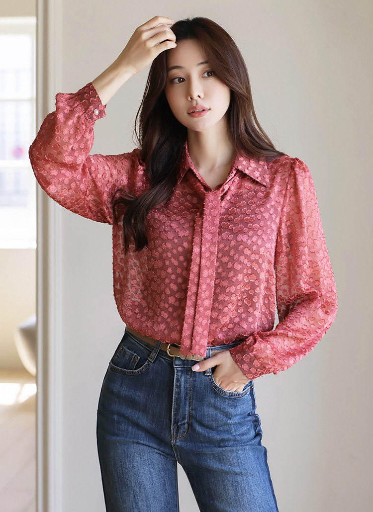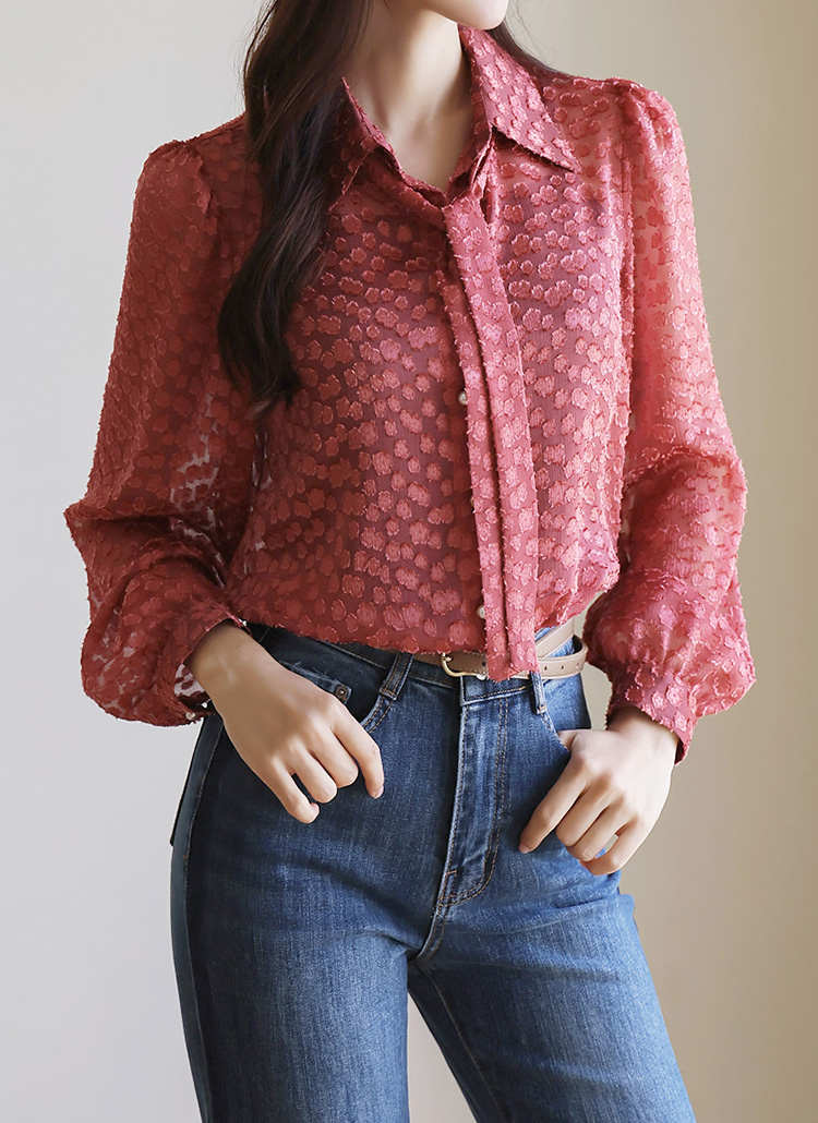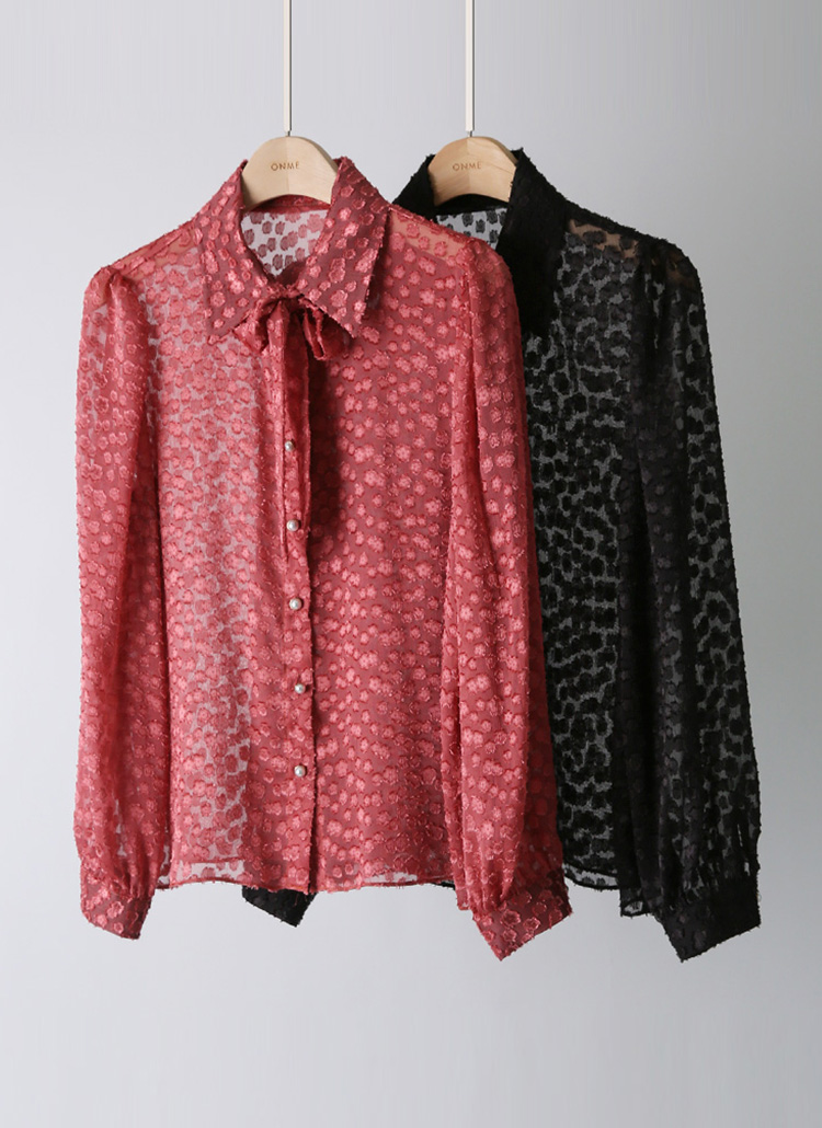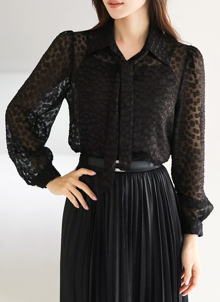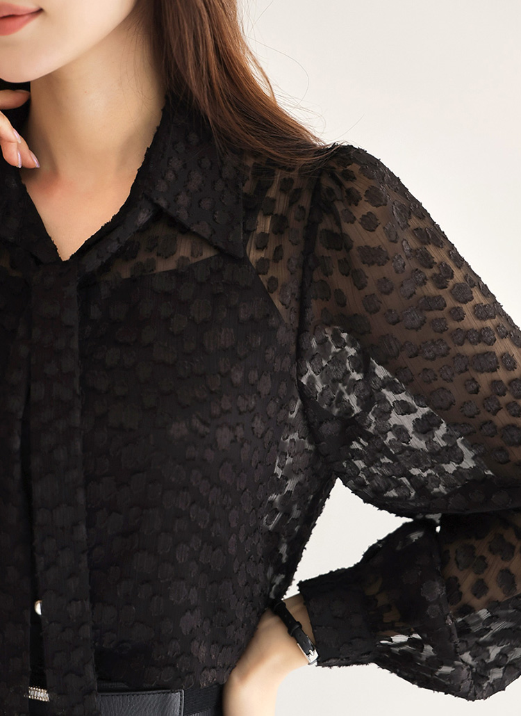 [LouisAngel] Polka Dot Jacquard Sheer Chiffon Blouse w/ Tie