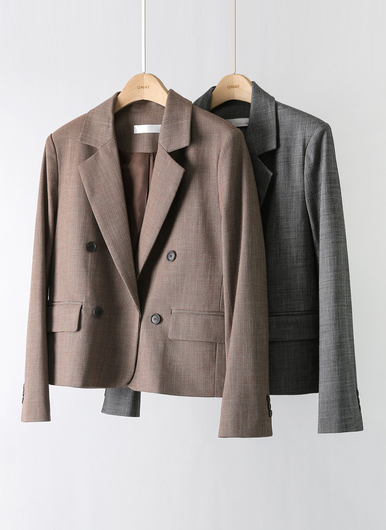 [The Onme] Double Breasted Tailored Check Jacket