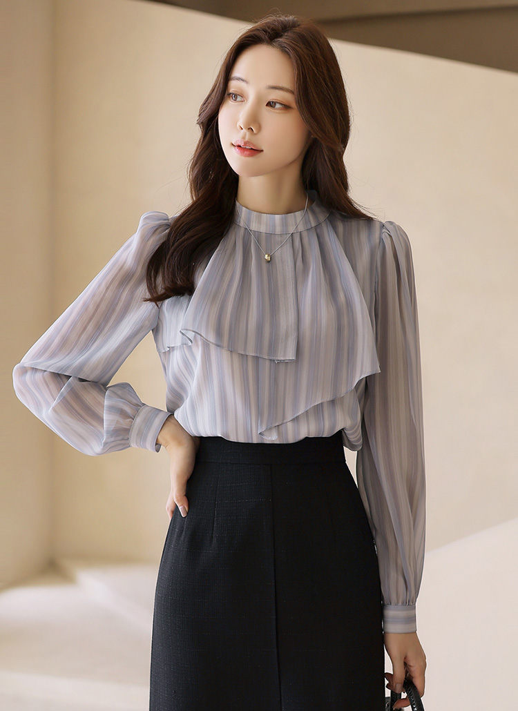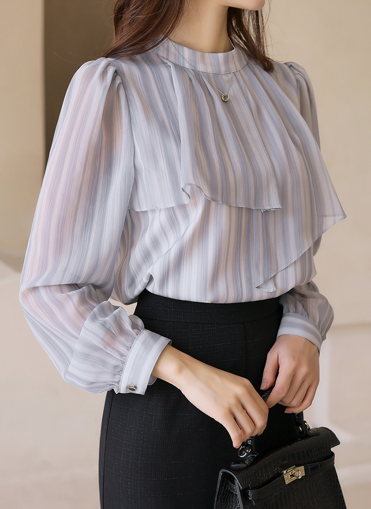 [LouisAngel] Ombre Striped Ruffle Blouse